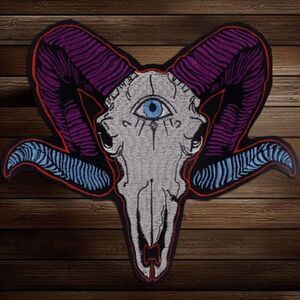 Large Embroidered Goat Head with Eyeball Applique Iron-on 10"x 9"
