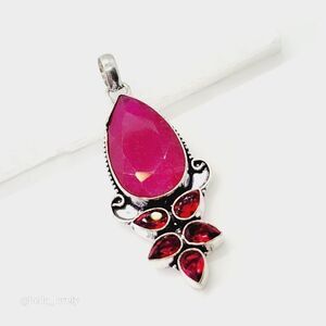 Large! Ruby Garnet Ethnic Handmade Pendant Jewelry 3"