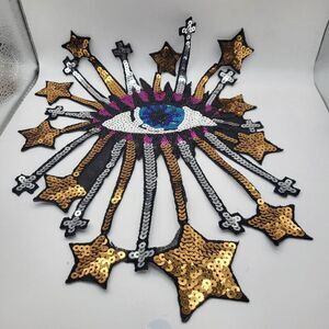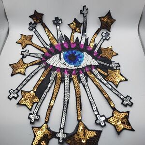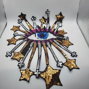 Large Sequin Eyeball Explosion Applique Iron on 12in long | Materials: sequin | Length: 12in long | Clasp: iron on | Signed? no | NWOT