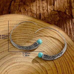 Large Silver Tone Feather Spiral Earrings in Turquoise Blue #1314