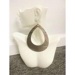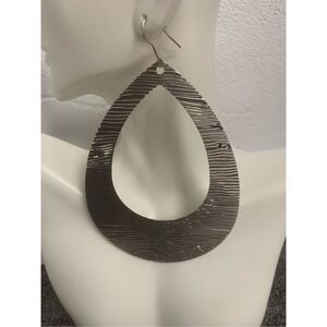 Ladies super cute brushed silver colored tear drop hoop earrings. Excellent condition. New with tags. Lightweight, made from hypoallergenic nickel free metal. Approximately 2.5" long.
