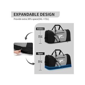 The travel bag features an expansion design with zipper at the bottom, which can be converted from 54L (23.6 x11.8 x 11.8 inch) to 72L (23.6 x 11.8 x 15.7 inch), which is 30% more capacity, large enough to store essentials for 5-7 days trips. This flexible and expandable carry-on bag ensures you travel in style without compromising on space.