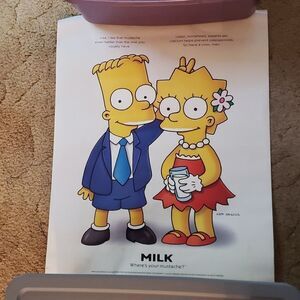 Large Vintage 1996 Bart Simpson Lisa Simpson Milk Mustache Promotional Poster