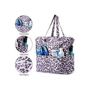 Large Capacity - Size at L17.1" x H14.7" x W7", it can securely store all your stuff, like lotions, lipstick, beach towel, beach hat, beach toys, coke, wallet, flip flops, sunglasses, sunscreen, swimsuit and other necessities.