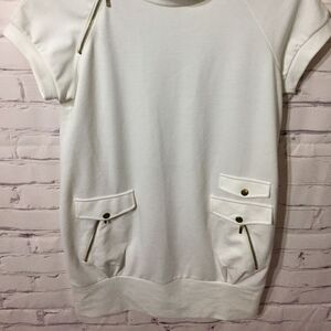Great condition and so cute! It has a little make up on the collar and I have it in a pic but not noticeable. The length is 33 inches from top to bottom from the back. Armpit to armpit is 18 inches. The zipper pockets are actual pockets.