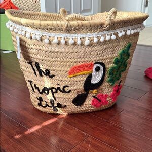 Large Woven Tote BRAND NEW - “The Tropic Life” Hand Embroidered Tucan Tote