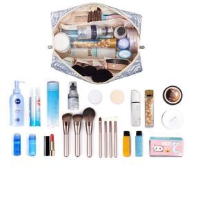 Perfect cosmetic bag that’s lightweight, and perfect for travel. One main compartment with 5 small pockets neatly organizes your makeup. One large compartment easily holds travel-size toiletries or large skin-care products. Side pockets holds your concealer, lipsticks or other small items.
