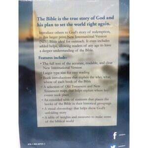 The Bible is written in English and is a part of the Christian Ministry/Evangelism genre. It was published in 2015 and is not a textbook. The book title is NIV Larger Print Bibles and it has features like large type and 1280 pages. The book is 8.4 inches long, 5.5 inches wide, and 2 inches high. It weighs 25.6 ounces and has a publication year of 2015.