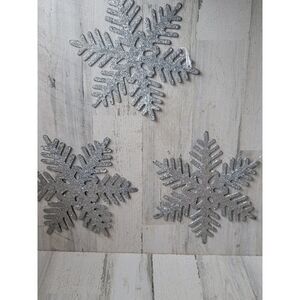 Large silver glitter snowflake ornament Xmas set