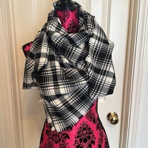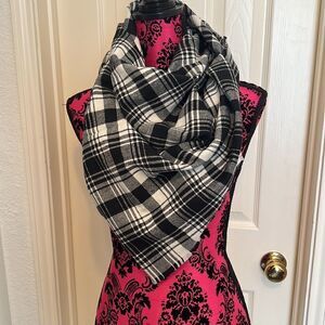 Blanket scarf. Black, Gray and White Plaid Pattern