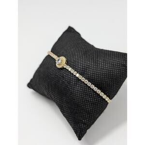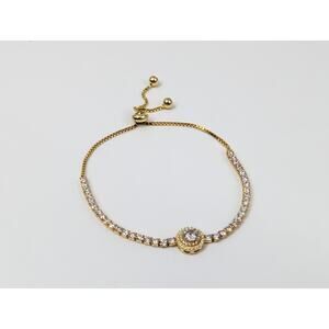 Lariat Bracelet 925 CZ Clear Rhinestones Gold Tone Bolo Tennis Style Minimalist
