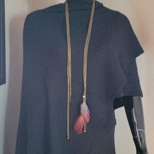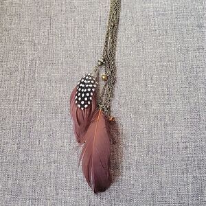 Lariat Necklace Bronze Tone Chain With Beads And Feathers NWOT Fashion Jewery