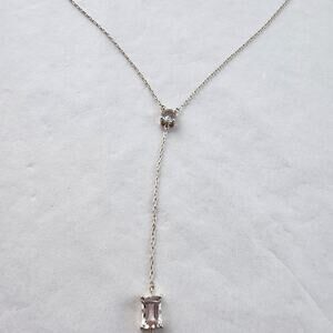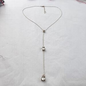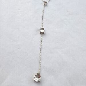 Lariat Necklace Sterling Silver 925 Dainty CZ's Crystal Extra Long Drop Plunge