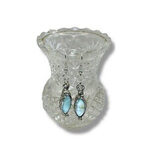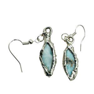 Larimar Dainty Earrings Encased In Boho Artisan Silver Bezels With 925 Hooks