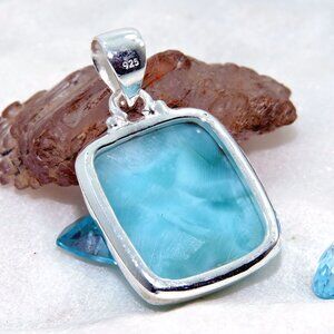 Larimar Gemstone Pendant, 925 Sterling Silver, Handmade Design Pendant, For Gift, Genuine Larimar, Solid Silver Pendant, Gift for her/him, AAA Quality Pendant, Genuine Larimar from Dominican Republic, Cushion Octagon Larimar Pendant, One Of Kind Jewellery
