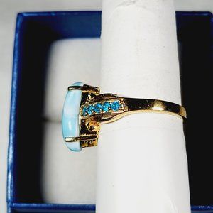 Larimar & Neon Apatite ring in 14K YG over 925 SS 4.90 ct size 8