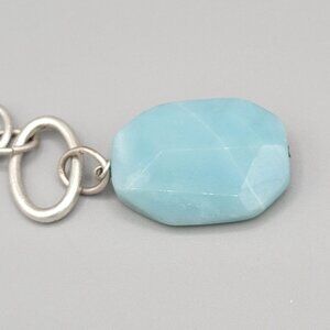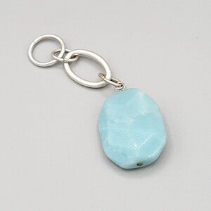 Larimar Silver Tone Metal Key Chain With Faceted Blue Gemstone Pendant