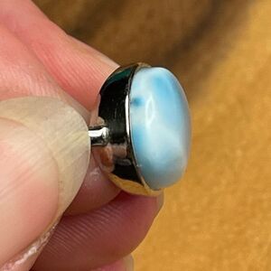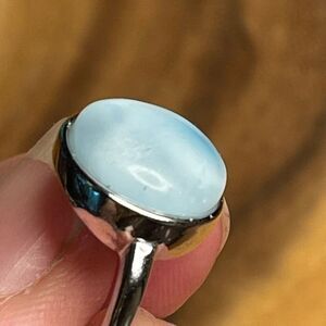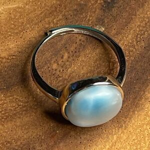 Larimar S925 sterling silver adjustable ring 10mm natural stone crystal NEW
