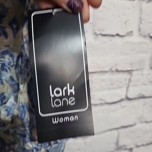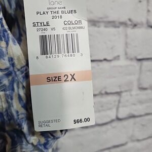 Lark Lane 2X Blue Cream Patterned Peasant Blouse Top Bohemian Tunic Women