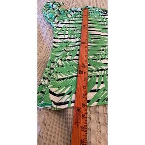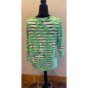 Lark Lane Blouse Plus Size XL Top Green Tropical Leaf Pattern Embellished Neck