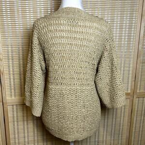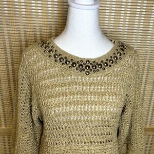 Lark Lane Tan Crochet Women's Long Sleeve Tunic Chic Classic Sweater Small