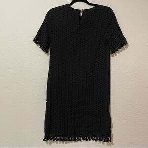 Lark & Ro Black Eyelet Fringe Trim Shift Dress XS