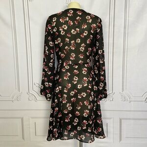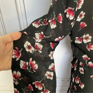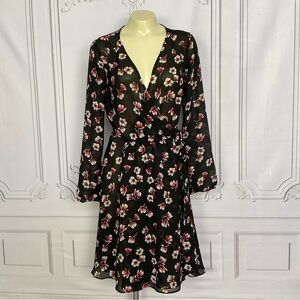 Lark & Ro Black Semi Sheer Long Sleeve Side Tie Wrap Dress Flirty & Flowing Sm