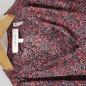 Lark & Ro Blouse Size Large Pullover Cinch Sleeve Multicolor Floral Lightweight
