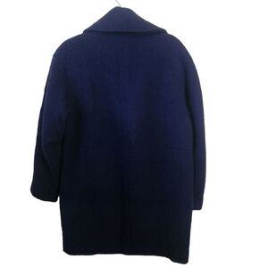Lark & Ro Blue Brushed Wool Blend Overcoat, Size M. Pit to pit 23", shoulder to hem 34", Notched Collar, Fully Lined, Deep Front Pockets, Hidden Snap Closure, Color Midnight. Good Pre-Owned Condition