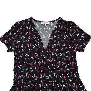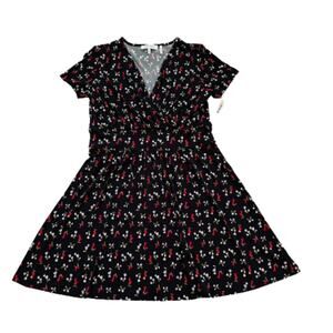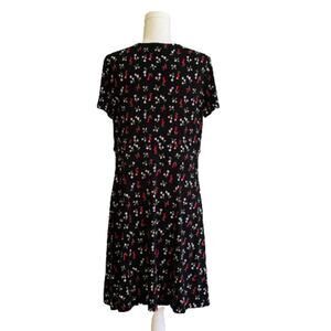 Lark & Ro Dress Black Red Floral V-Neck Short Sleeve Faux Wrap Dress Size 14 NEW
