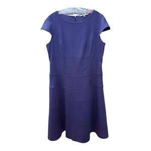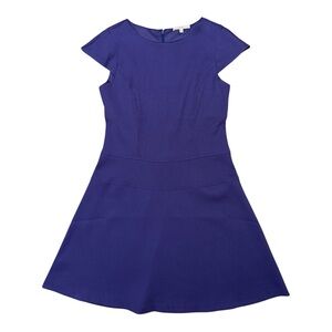 This elegant Lark & Ro dress showcases a stunning purple hue, perfect for cocktail events or work settings. The A-line silhouette is complemented by a bateau neckline and flutter cap sleeves, offering a sophisticated and stylish look. Its midi length adds a touch of class, making it a versatile addition to any wardrobe.