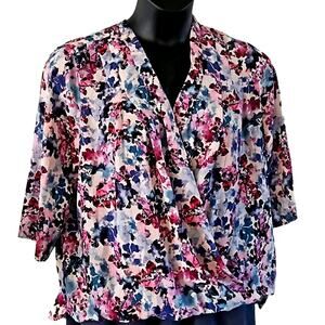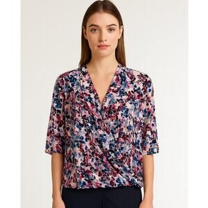 Lark & Ro Women’s Floral 3/4 Sleeve Faux Wrap Blouse - Size Large - Draped Front