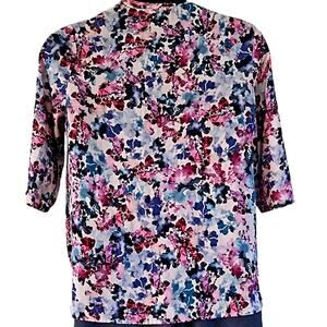Color: Multicolor floral (shades of pink, blue, purple, and black)