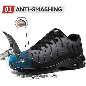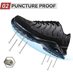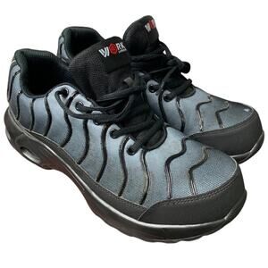 Larnmern Mens 11 Blue Black Steel Toe Air Cushion Breathable Lace Up Work Shoes