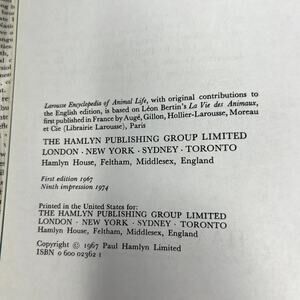 Larousse Encyclopedia of Animal Life - 1967 Paul Hamlyn Limited hard Cover VTG