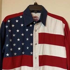 Larro American Flag Pearl Snap 100% Cotton Button Down Shirt, M