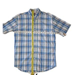 Larro Shirts Western Plaid Shirt - L Blue & Orange Short Sleeve Button Up