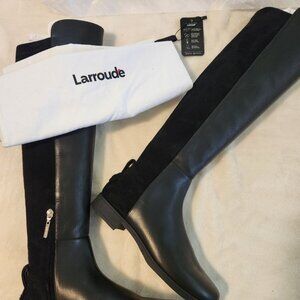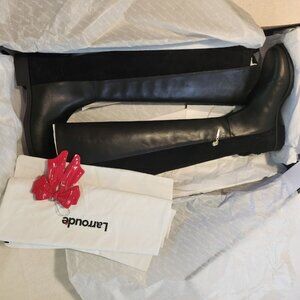 Larroudé Bergen Boot in Black leather and suede contrasting panel. Beautiful New With Tags in original packaging with all the accessories included. Bought directly from Larroudé in size 8 US. Bought it for myself but it is a little too tall for my petite frame. Please review the details: