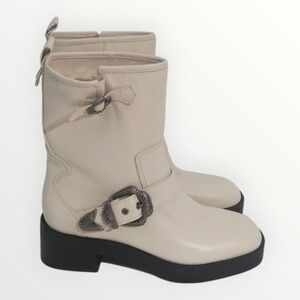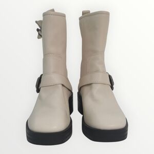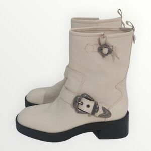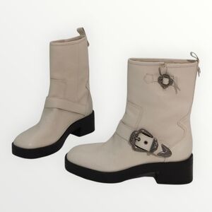 Larroudé Cream Leather Buckle Mid-Calf Moto Boots Women’s 8 Western Platf