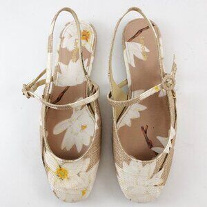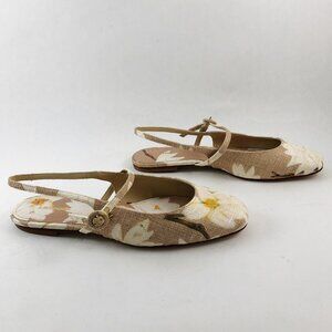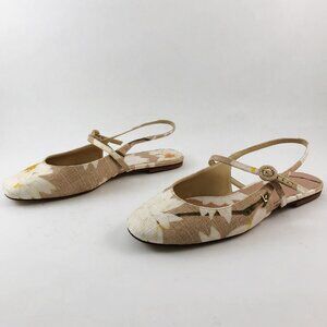 Larroudé Georgina Ballet Slingback Mary Jane Flat In Beige Printed Raffia 7.5