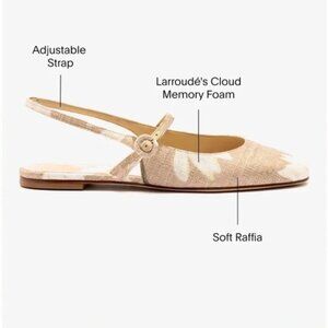 Larroudé Georgina Ballet Flat In Beige Printed Raffia from Anthropologie. A chic new flat that's equal parts slingback and mary-jane, the Georgina in our Lotus Print raffia knows how to make an entrance while still being an everyday favorite.