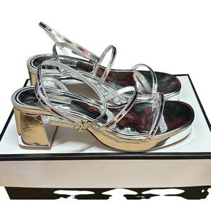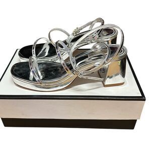 Larroudé Gio Sandals in Spechio Silver NWB Size 7 1/2