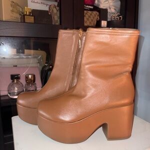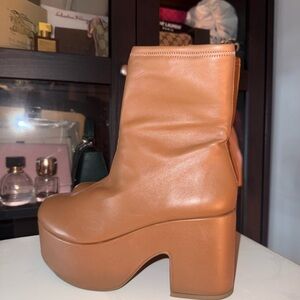 Larroudé Miso Platform Boot In Caramel Stretch Leather
