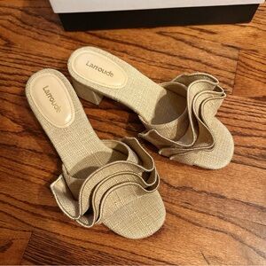 Larroudé Raffia Ruffle Sandals