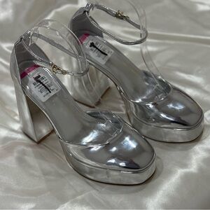 Larroude Ari Pump Heels Platform Closed Toe Specchio Leather Silver Size 9 New