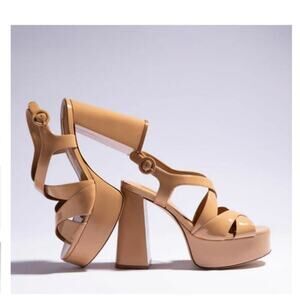 Larroude Bee Platform Sandel in beige patent leather size 9