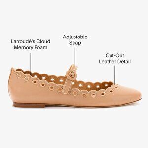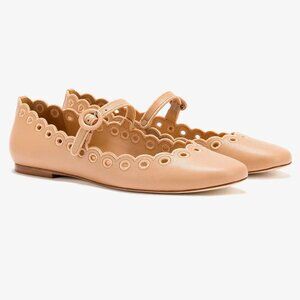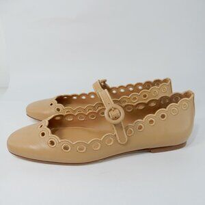 Larroude Blair Broderie Mary Jane Flats Size 6.5 Tan Leather Scalloped NEW $330