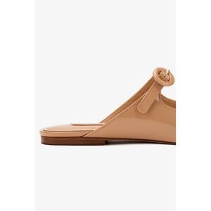 Larroude Blair Flat Mule in Patent Leather - 8.5 - Tan
