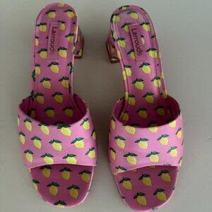 Larroude Brigitte Lemonade Pnik with Lemons Heeled Mules