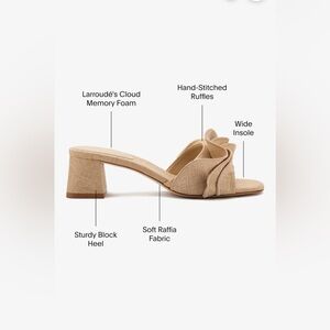 Larroude Brigitte Ruffle Mule Raffia Block Heel Sandals Beige Size 8.5